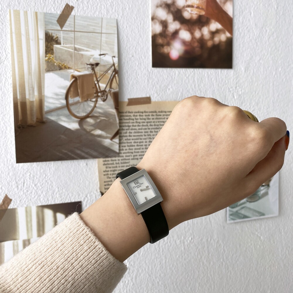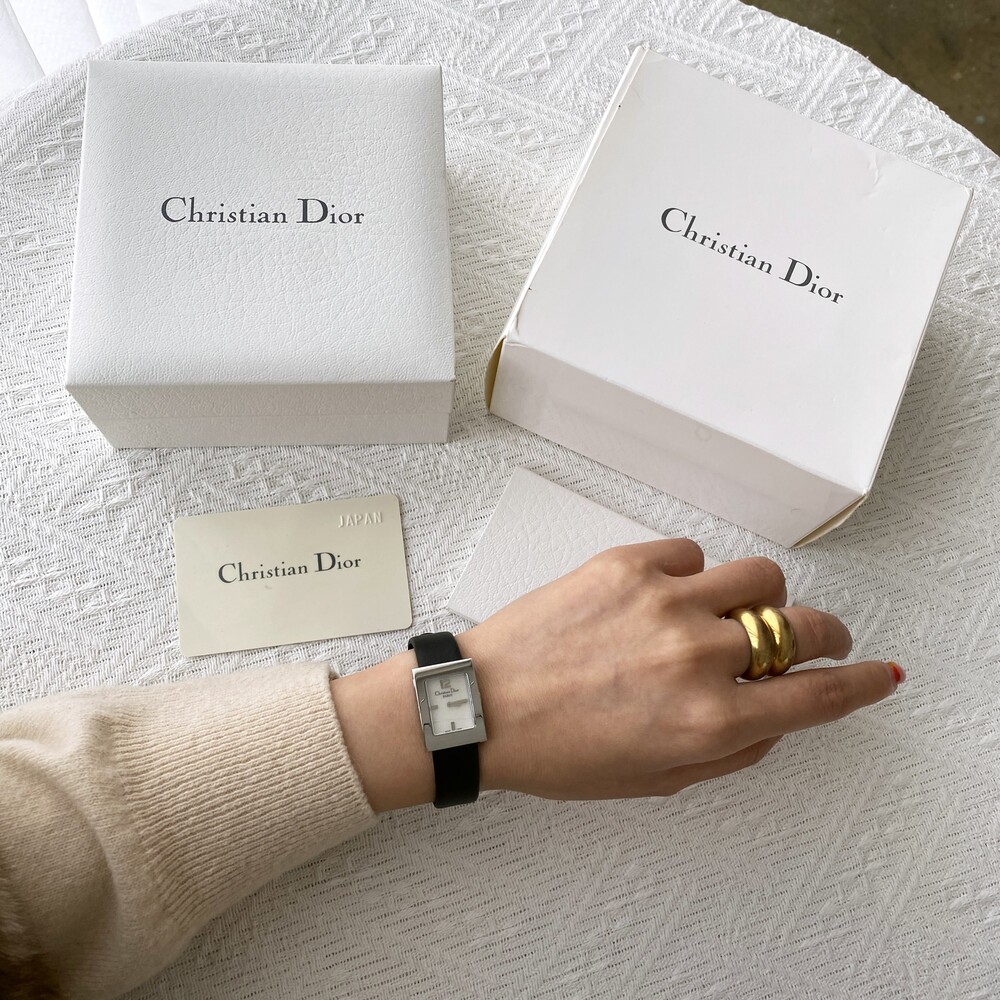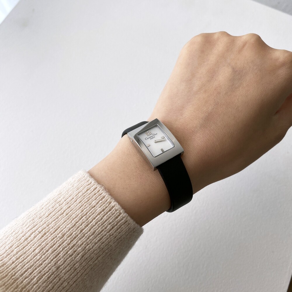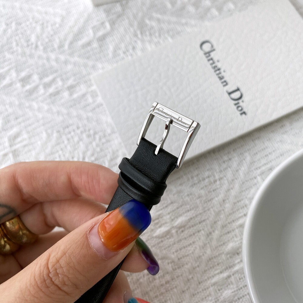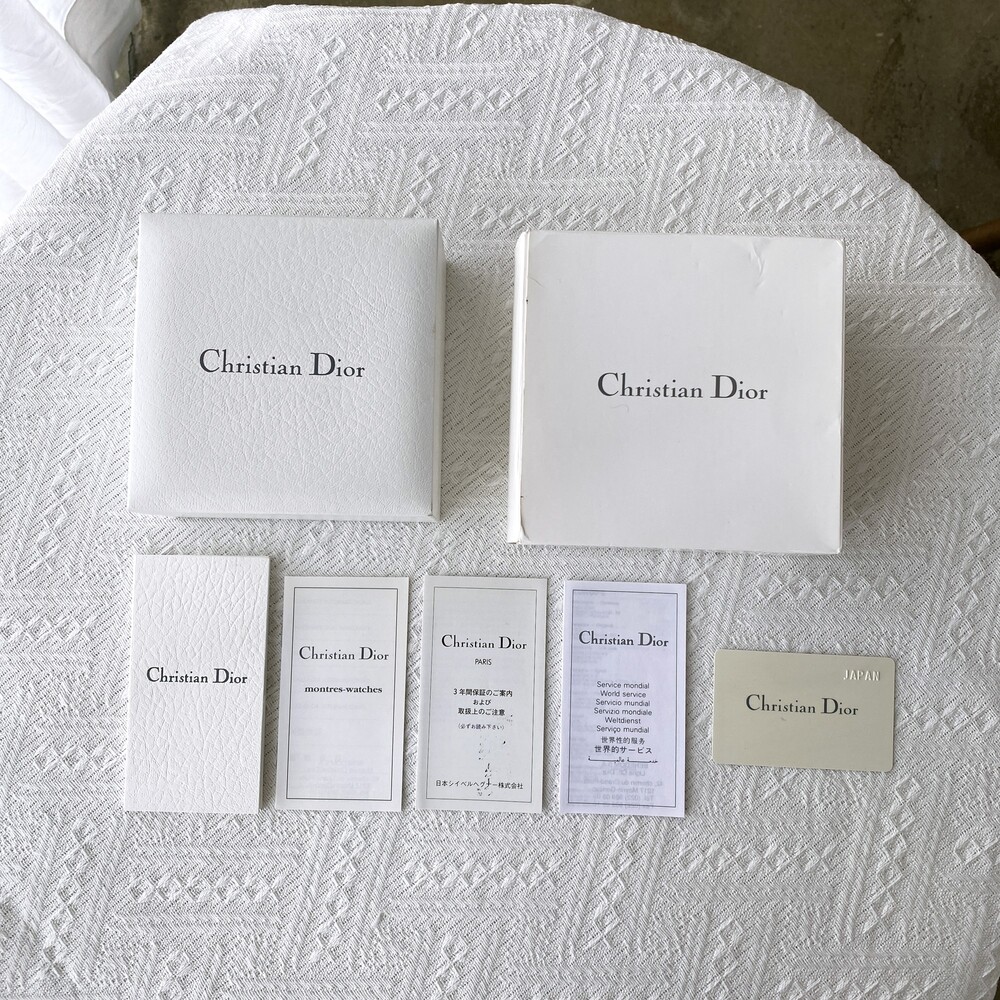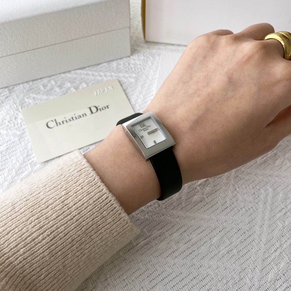 자개로 만들어진 다이얼 위를 장식하는 디올 로고가 아름다운 디올 시계입니다.