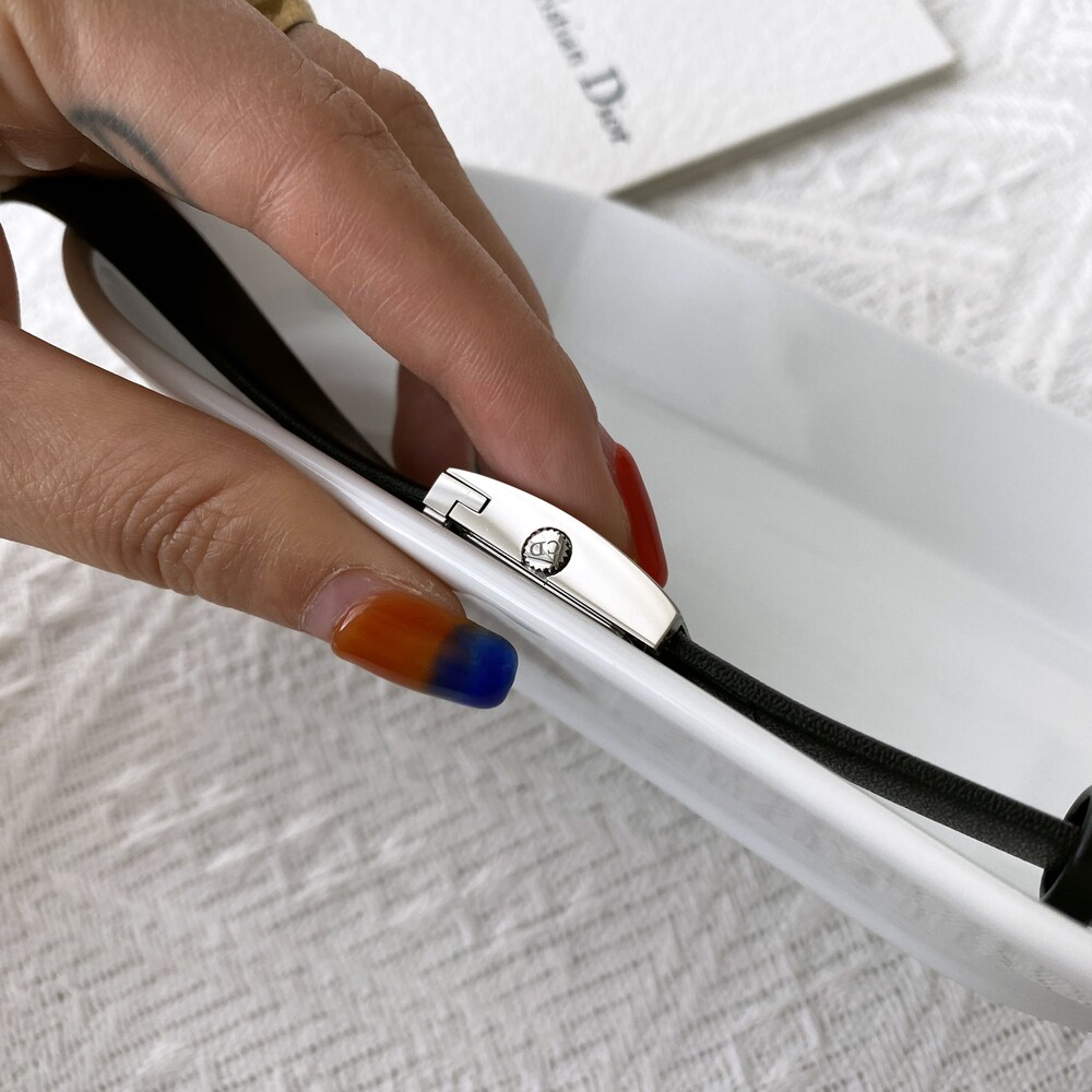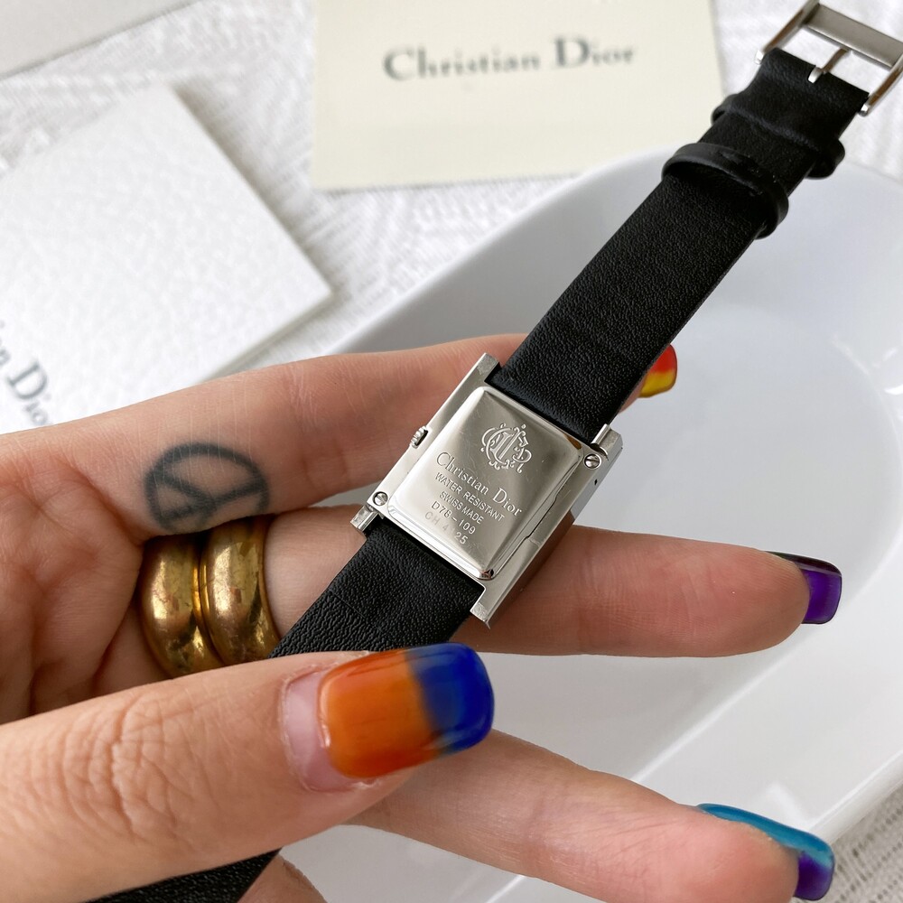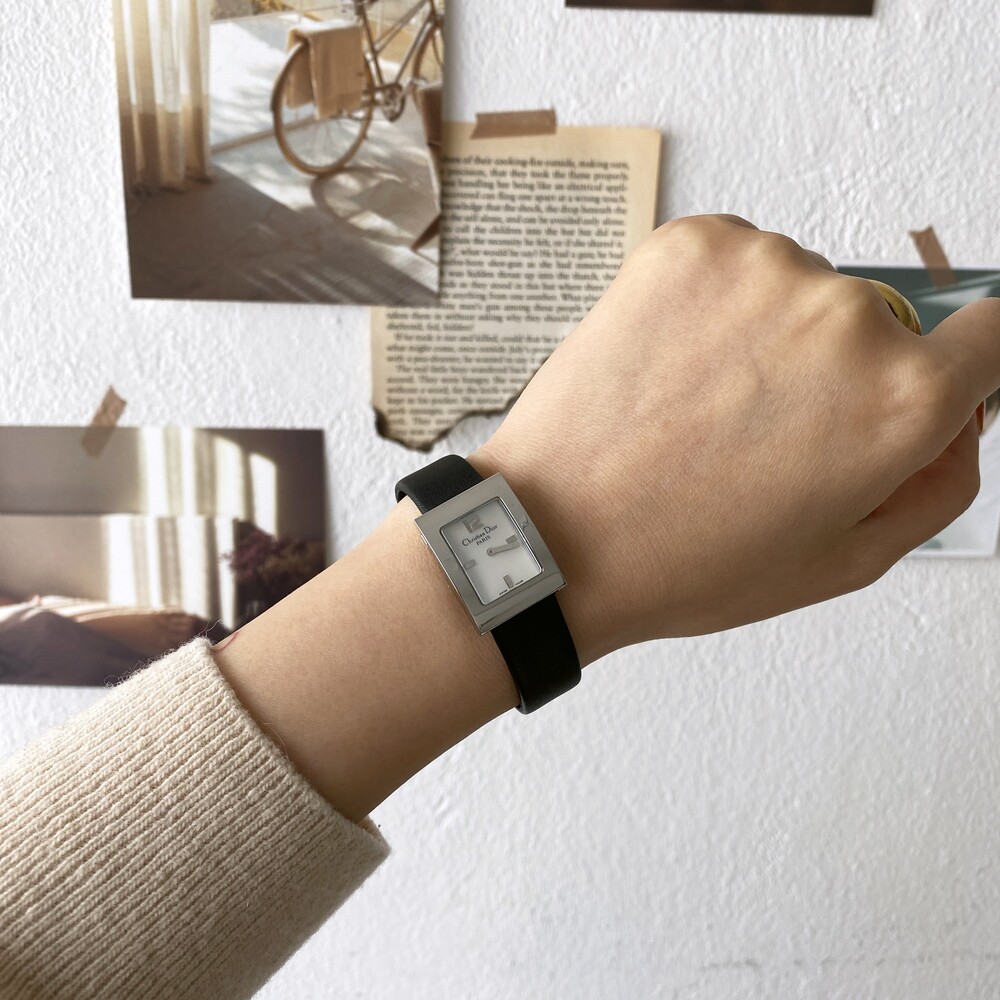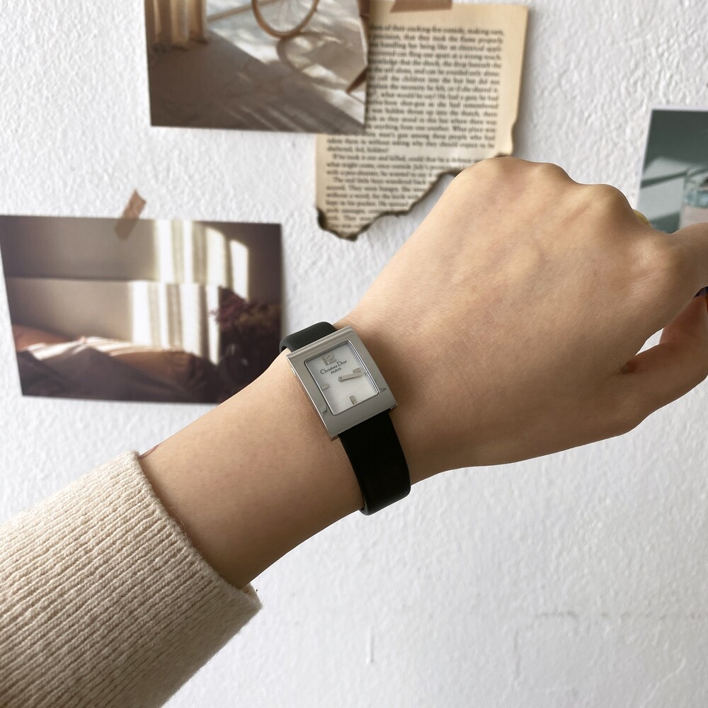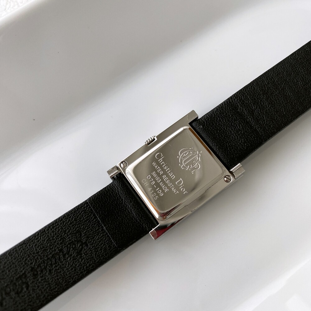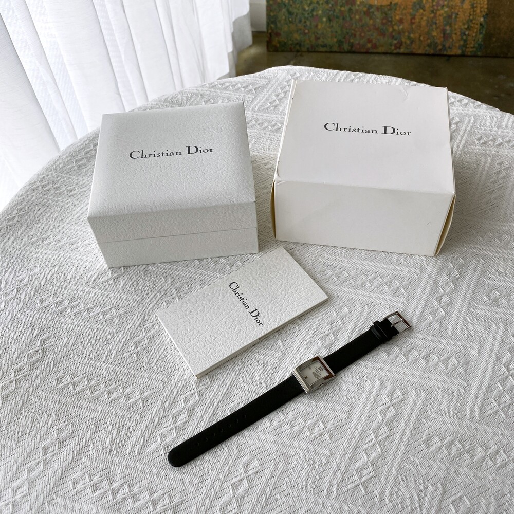 자개로 만들어진 다이얼 위를 장식하는 디올 로고가 아름다운 디올 시계입니다.
