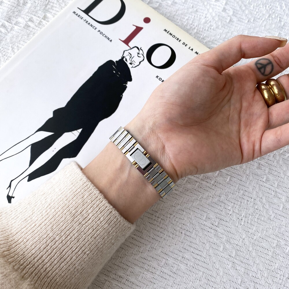 투톤 케이스와 화이트톤 다이얼 위를 장식하는