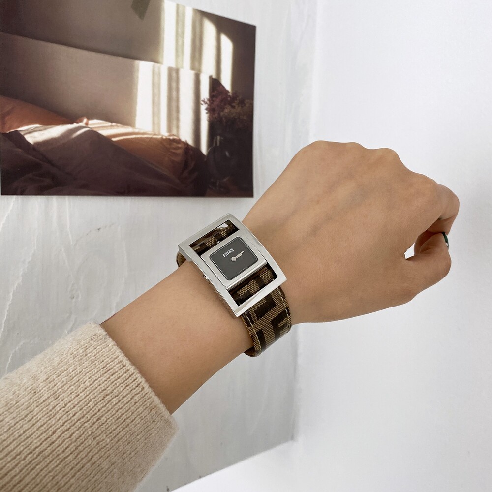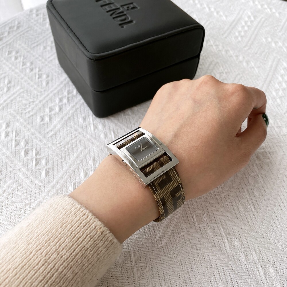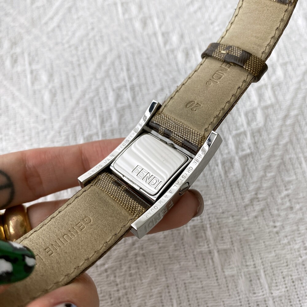 펜디 시계 케이스, 라벨이 포함된 제품입니다.