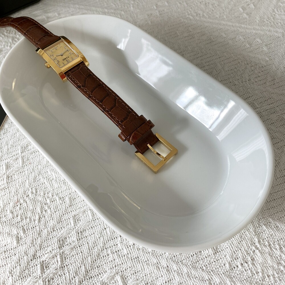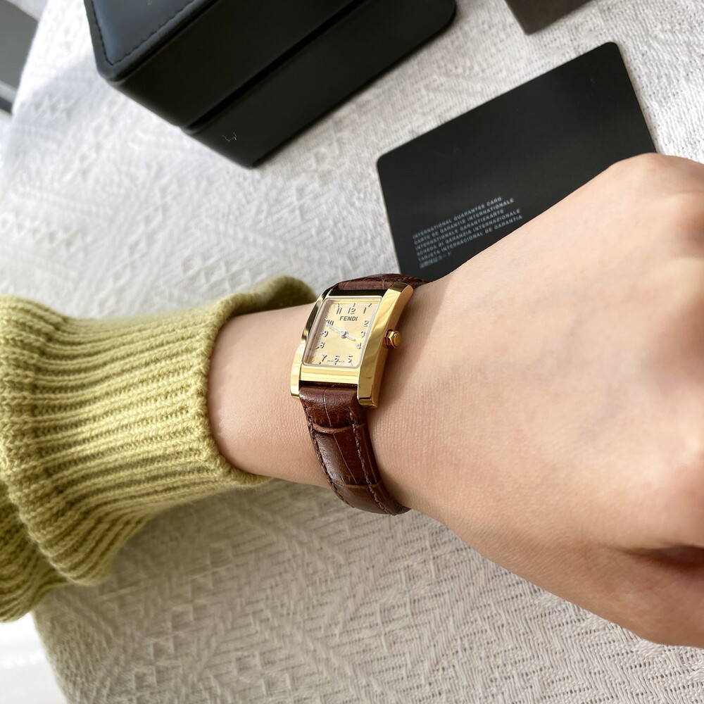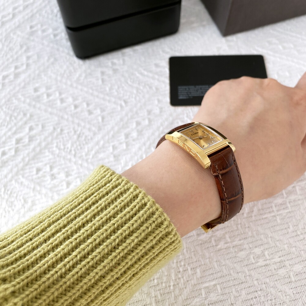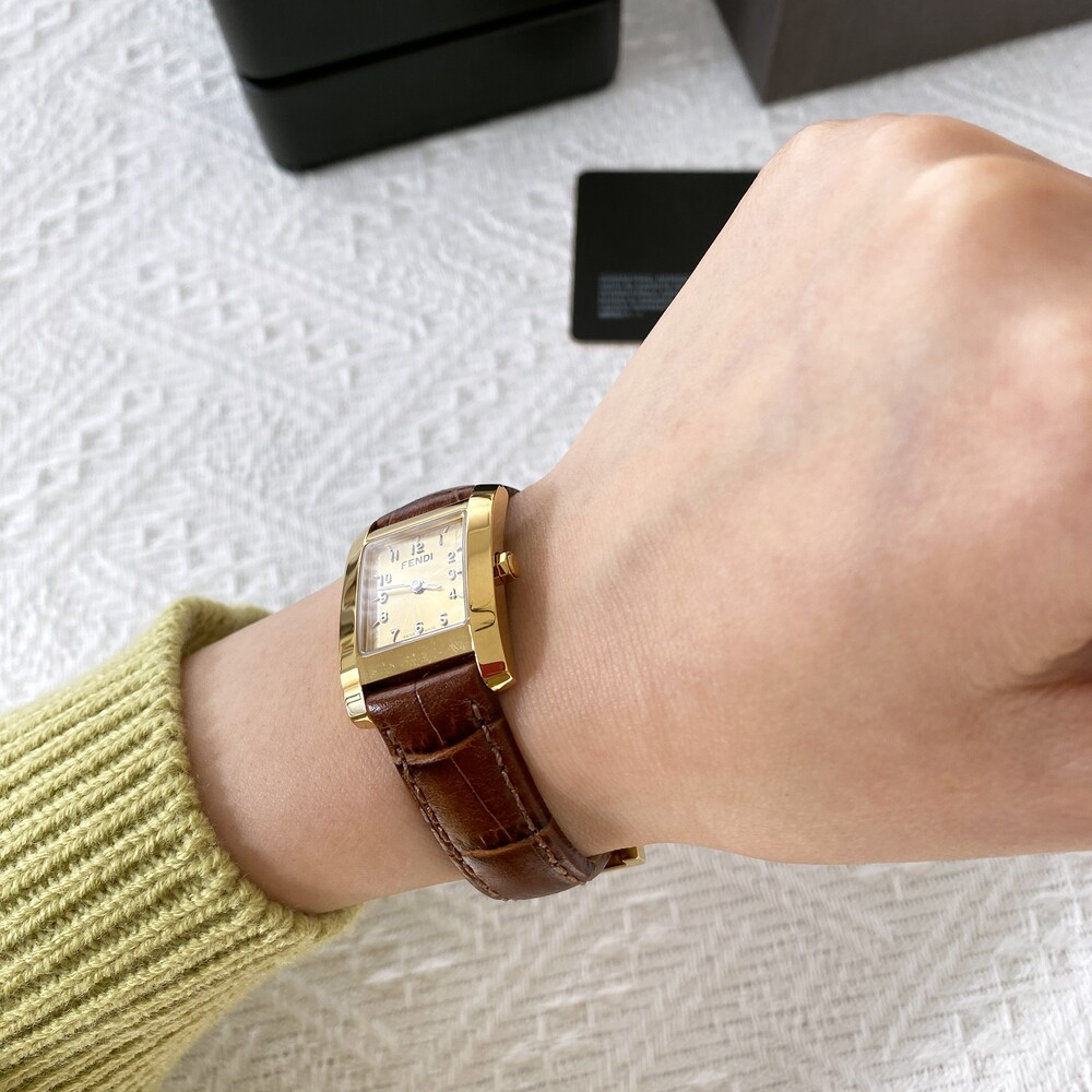 골드 케이스와 다이얼위를 장식하는 펜디 로고가 매력적인 시계입니다.