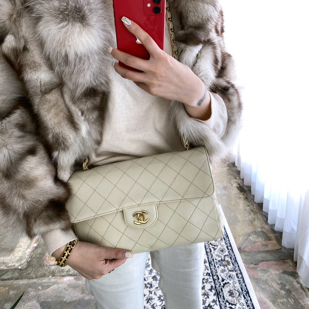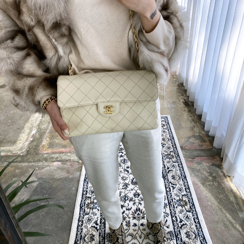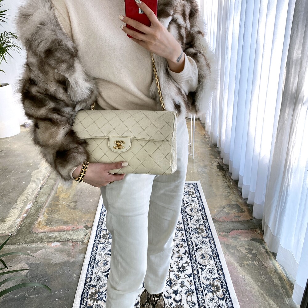 빈티지 샤넬 클래식 캐비어 플랩 백입니다.