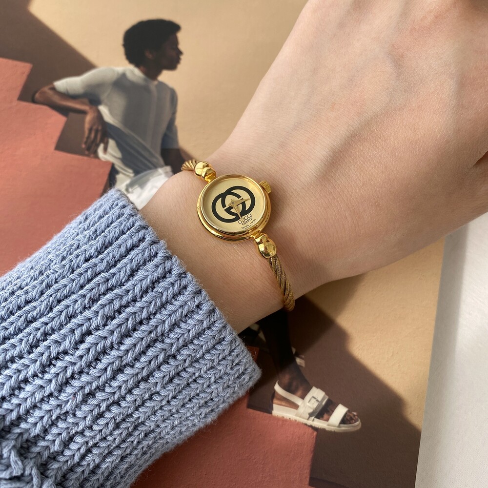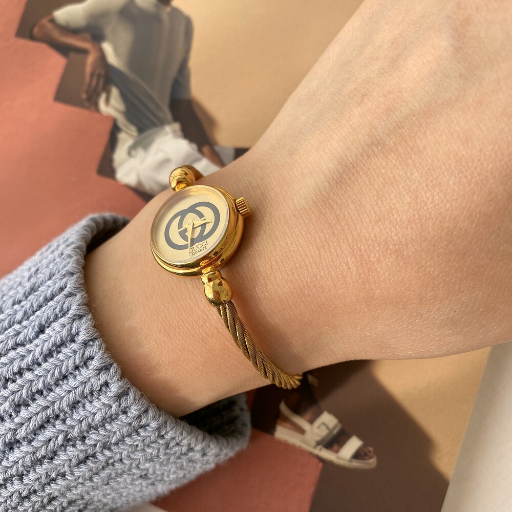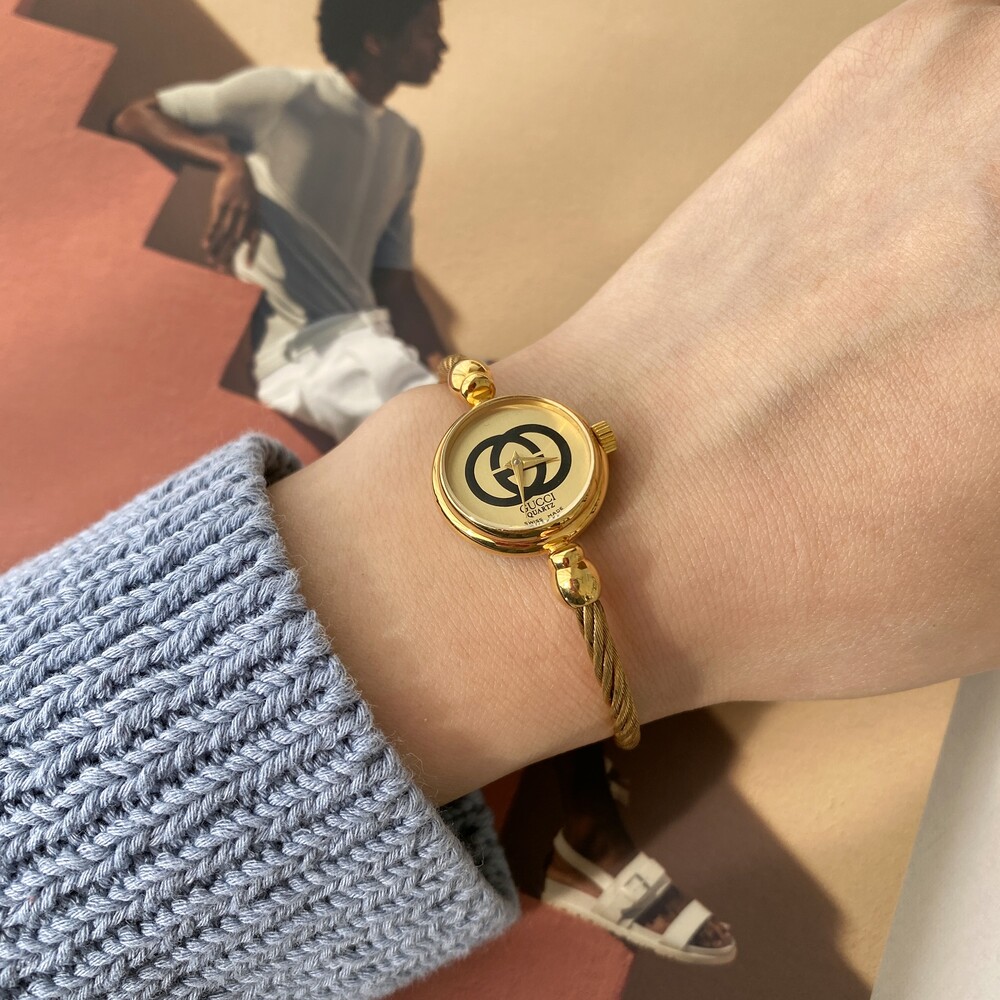 다이얼 위의 구찌 심볼 GG 로고가 아름다운 모델입니다.