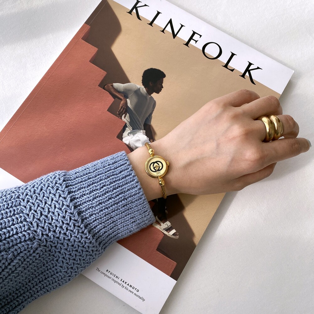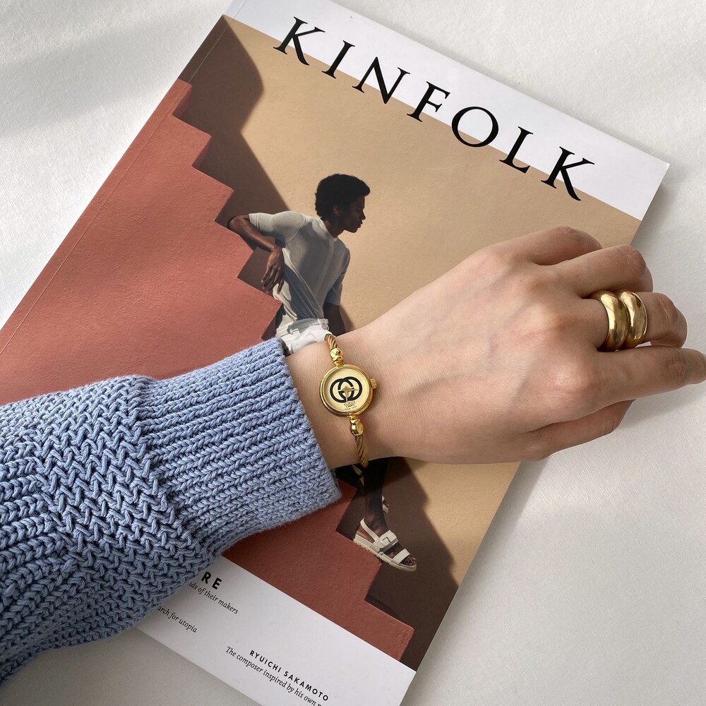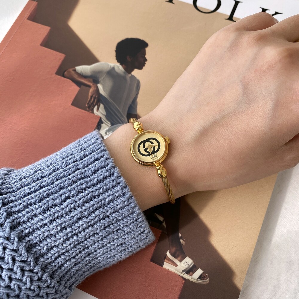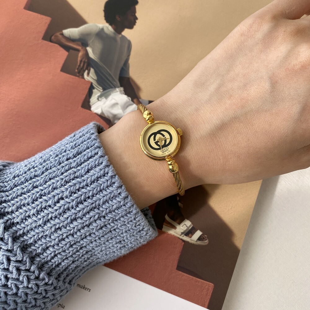 다이얼 위의 구찌 심볼 GG 로고가 아름다운 모델입니다.