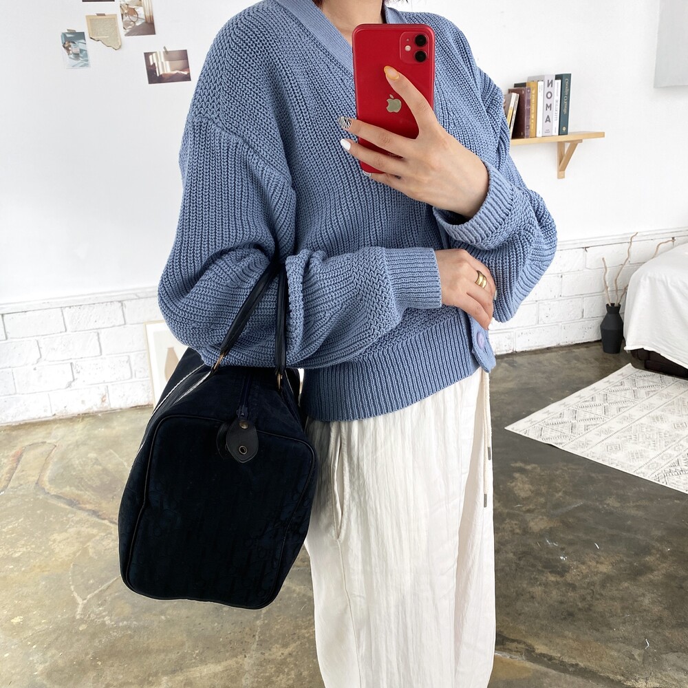 부드러운 디올 캔버스 바디와 가죽 트림 조합이 매력적인 가방입니다.