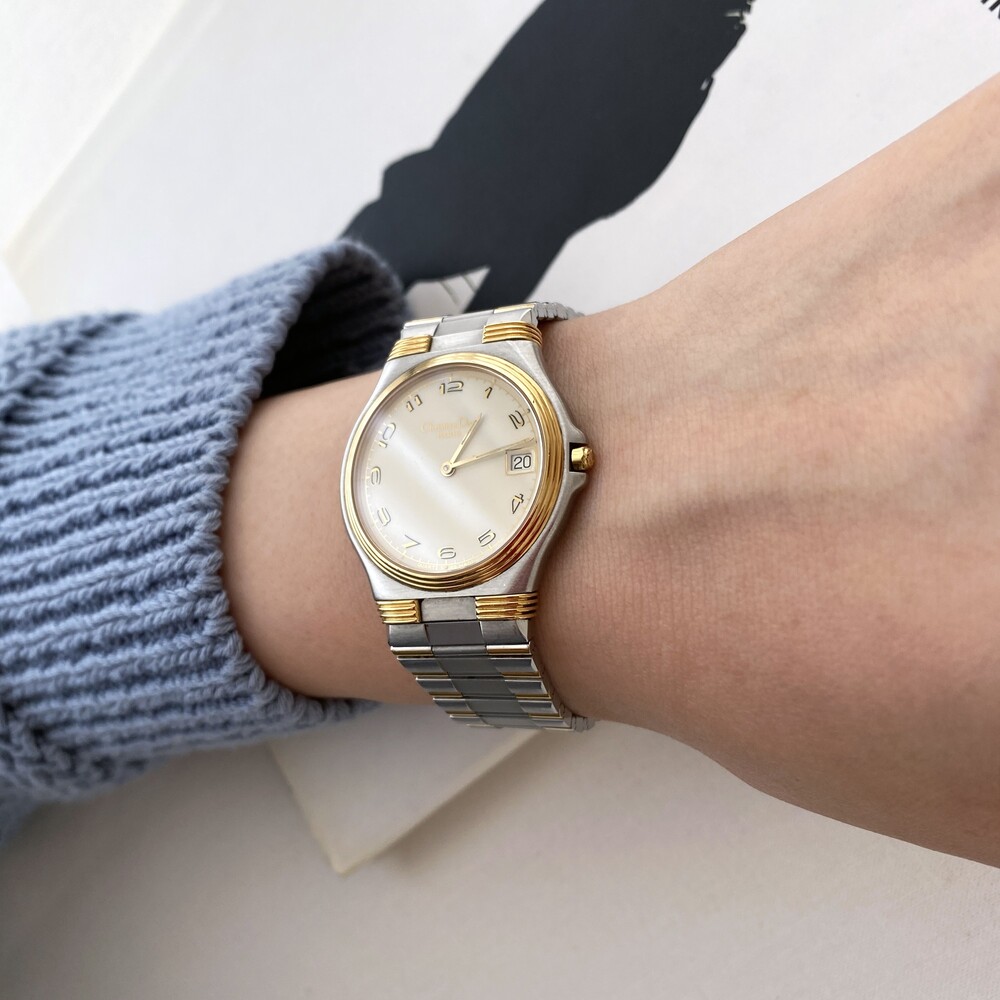 투톤 케이스와 샴페인 톤의 다이얼 위를 장식하는