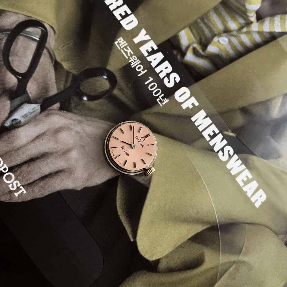 핑크 다이얼 커스텀 및 오버홀, 모든 복원 작업을 마친 빈티지 오메가 드빌 시계입니다.