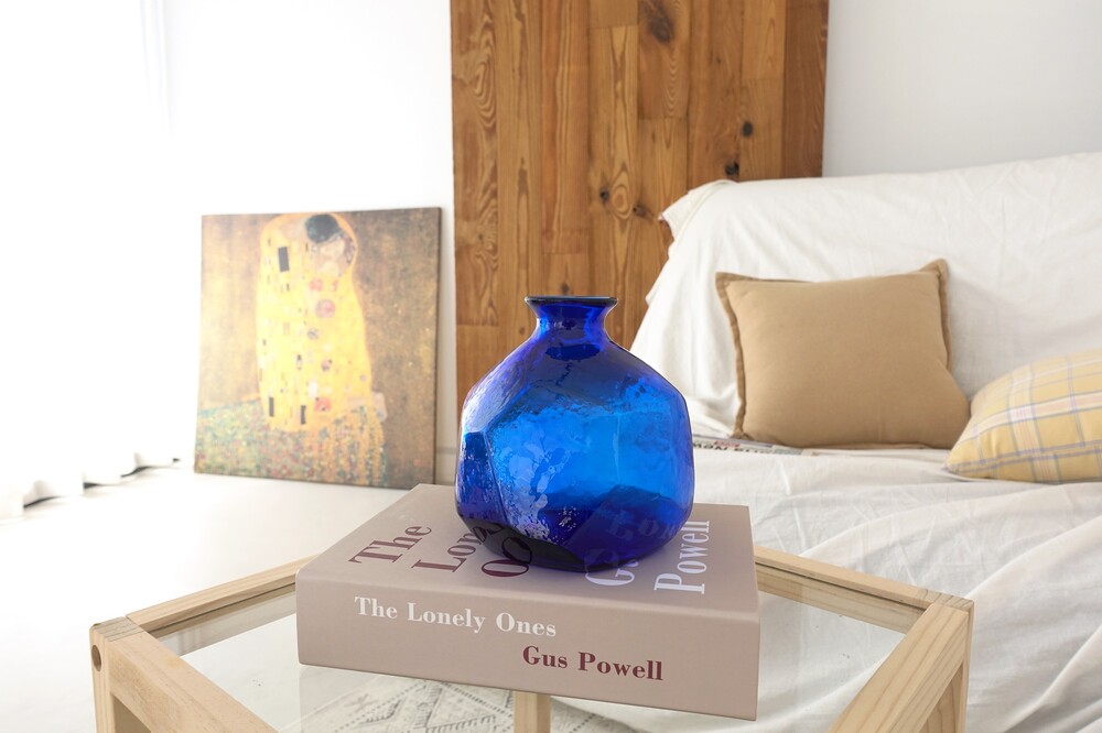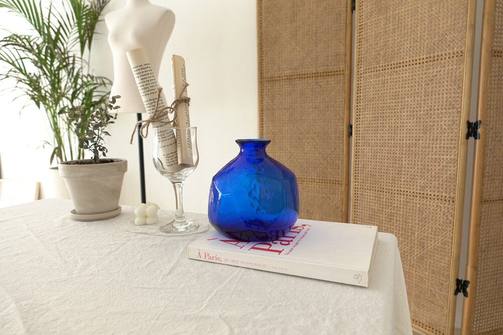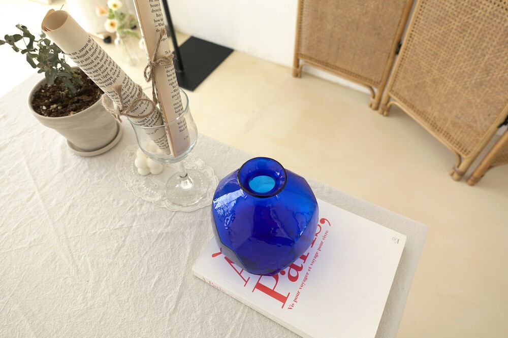 빈티지 핸드메이드 코발트블루 화병 오브제입니다.