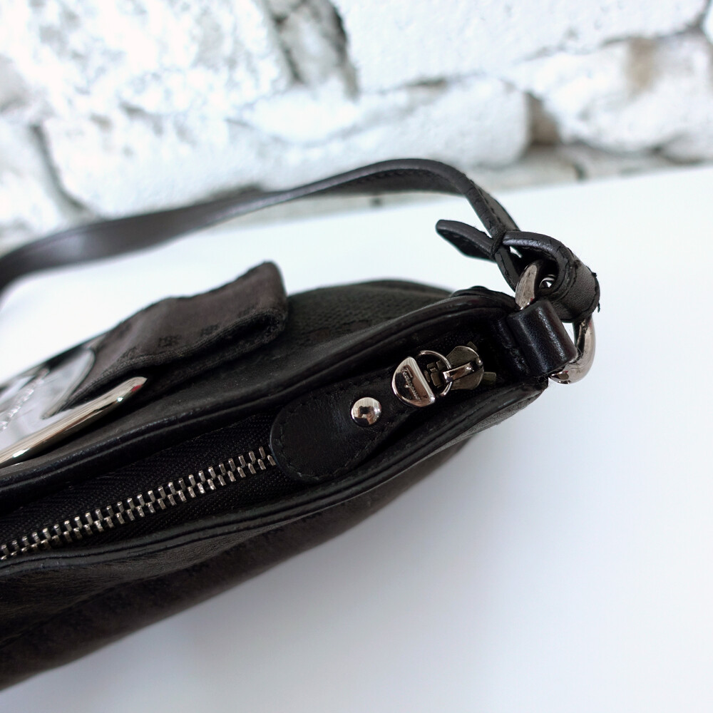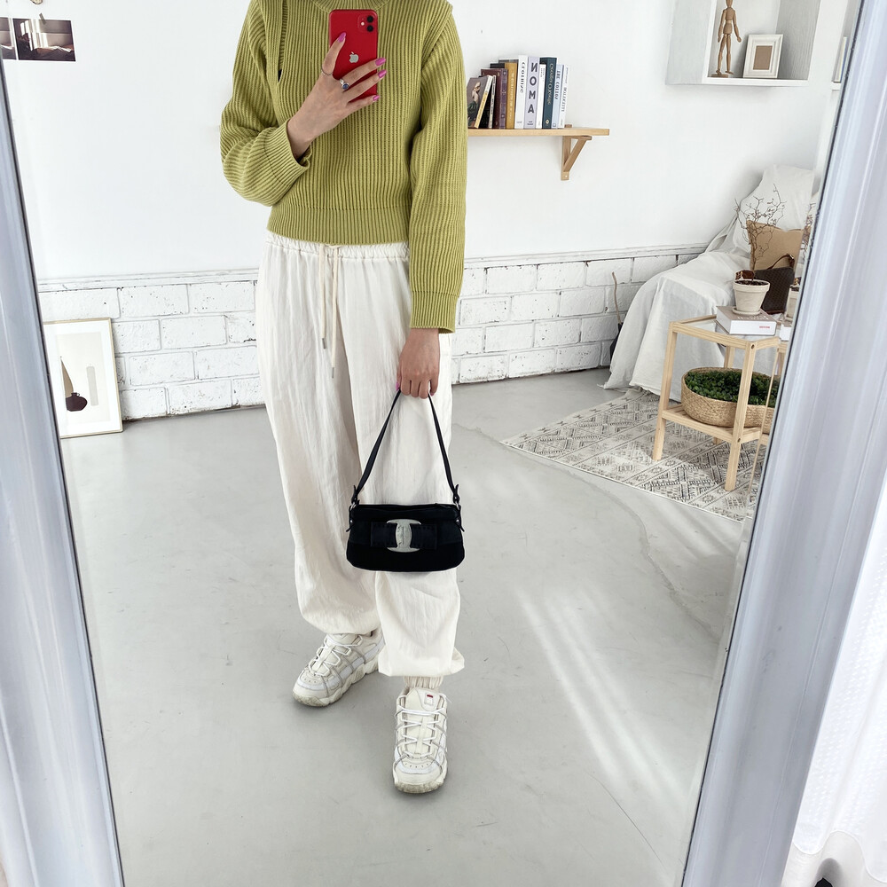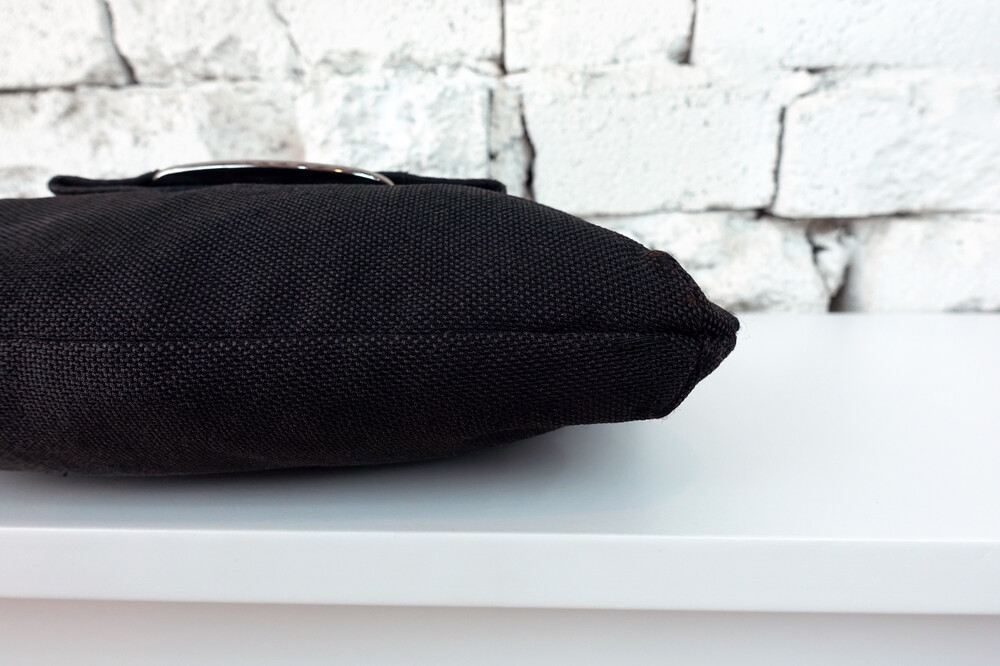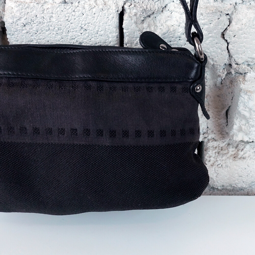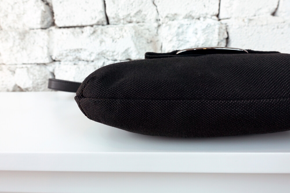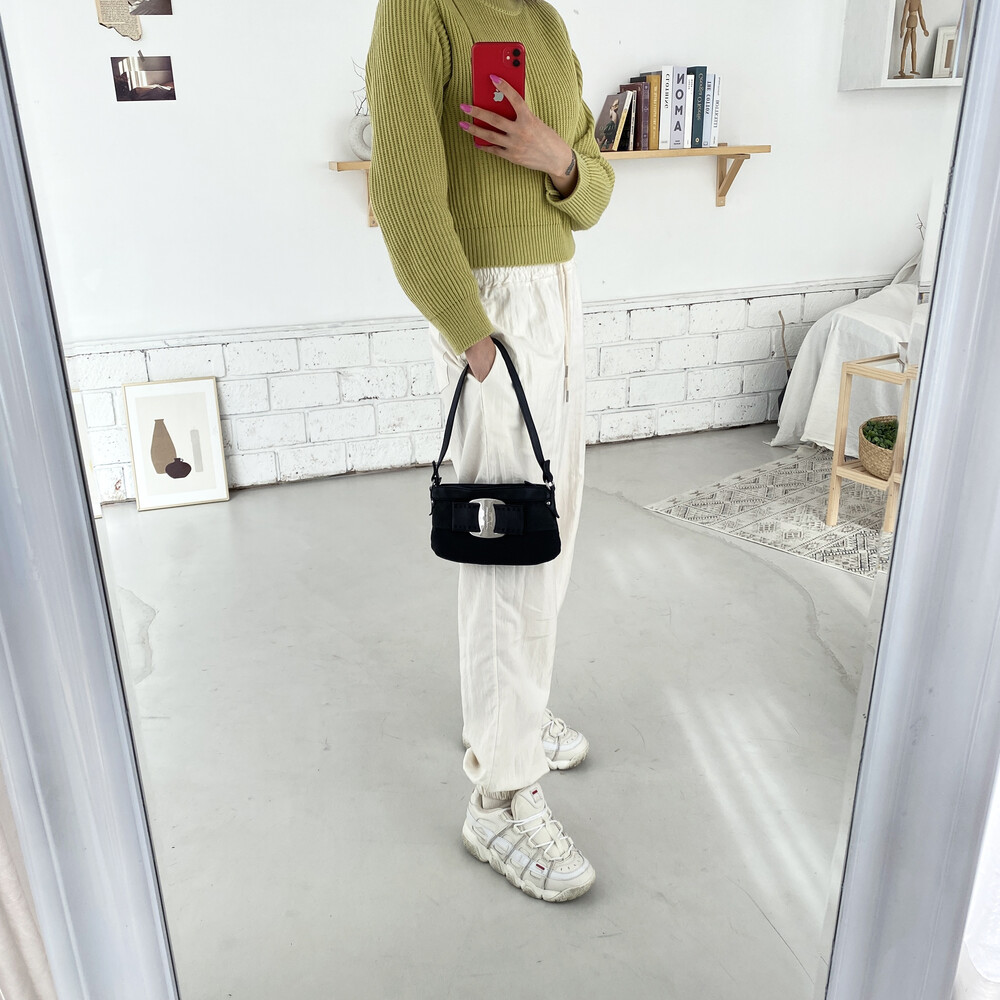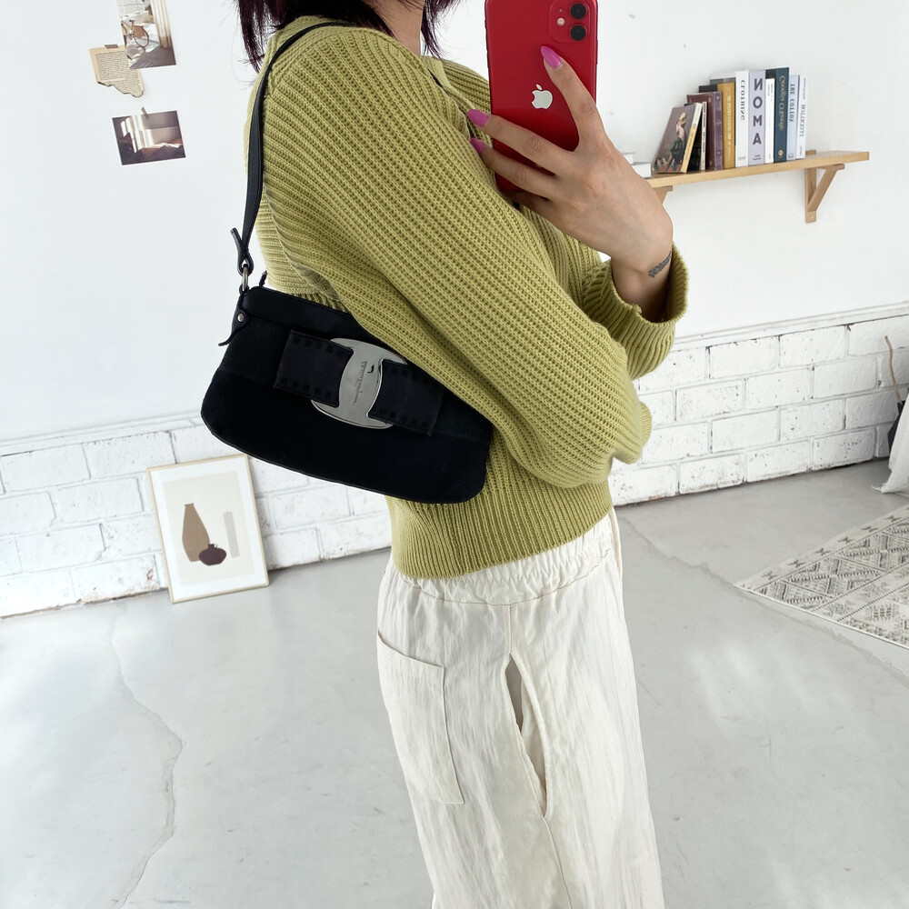 페라가모 리본 메인 장식과 부드러운 3가지 톤의 블랙 캔버스 바디가 매력적인 모델입니다.