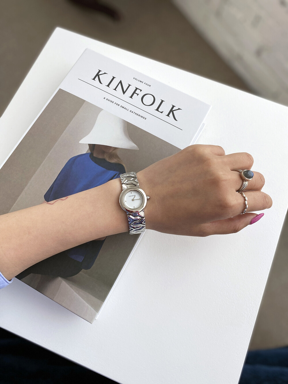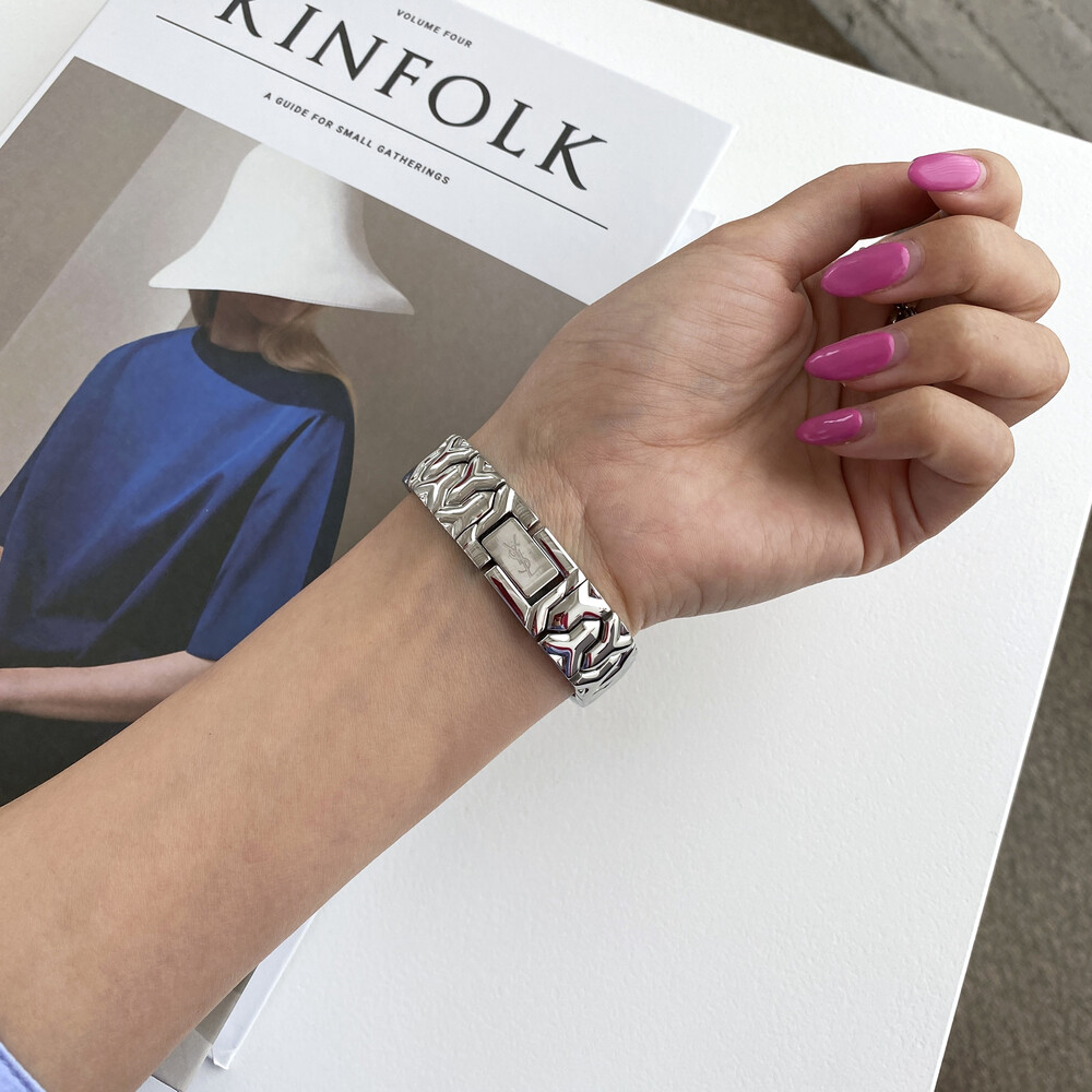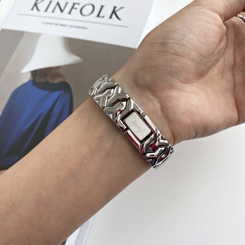 그리고 교차하는 생로랑 시그니처 Y 시계 밴드까지