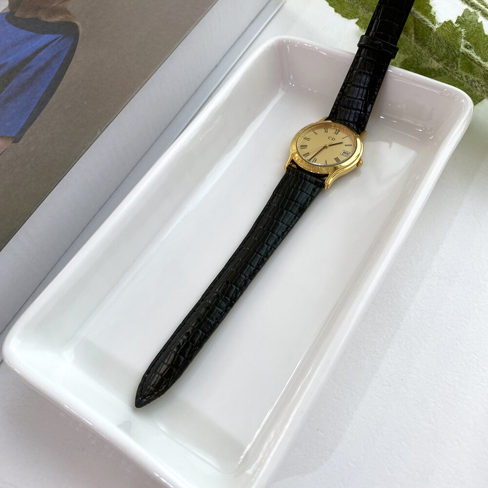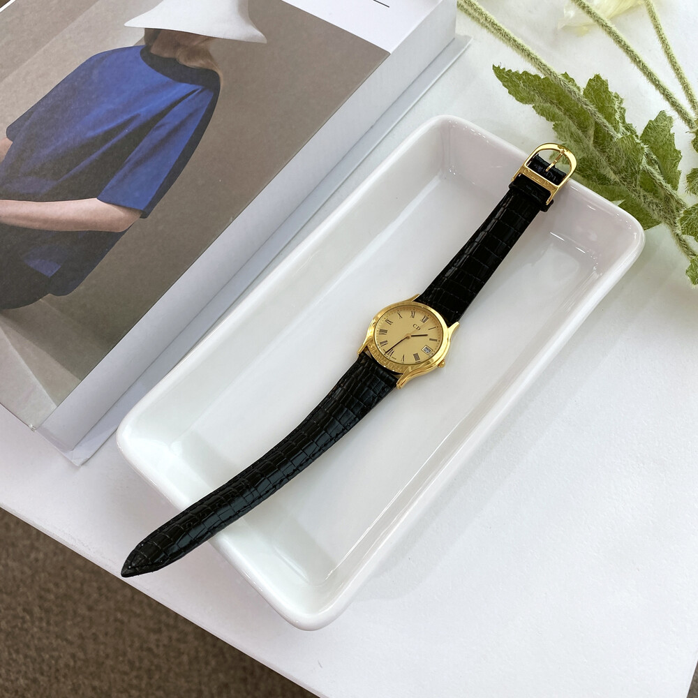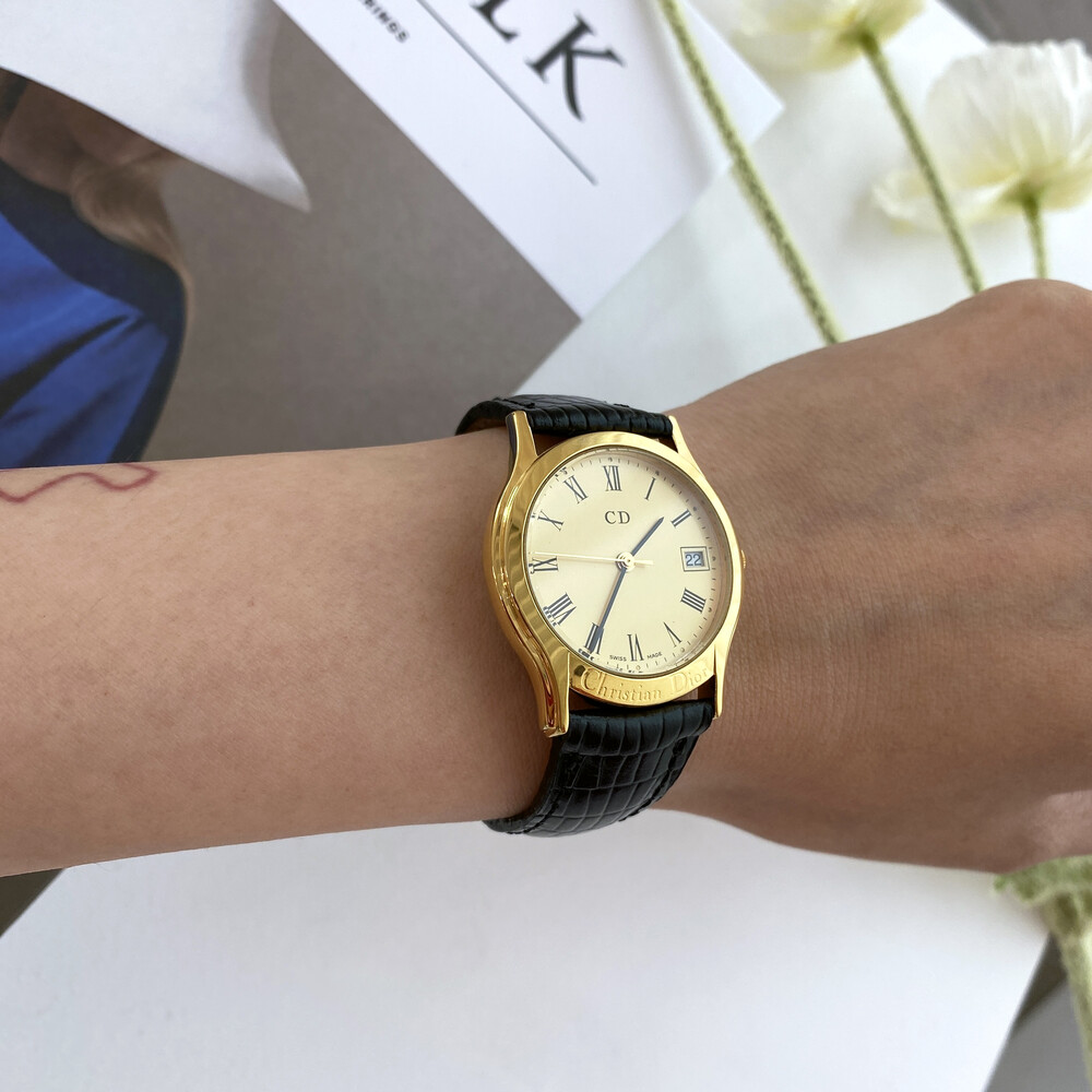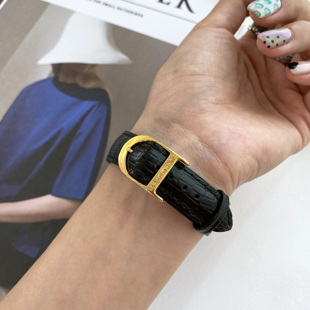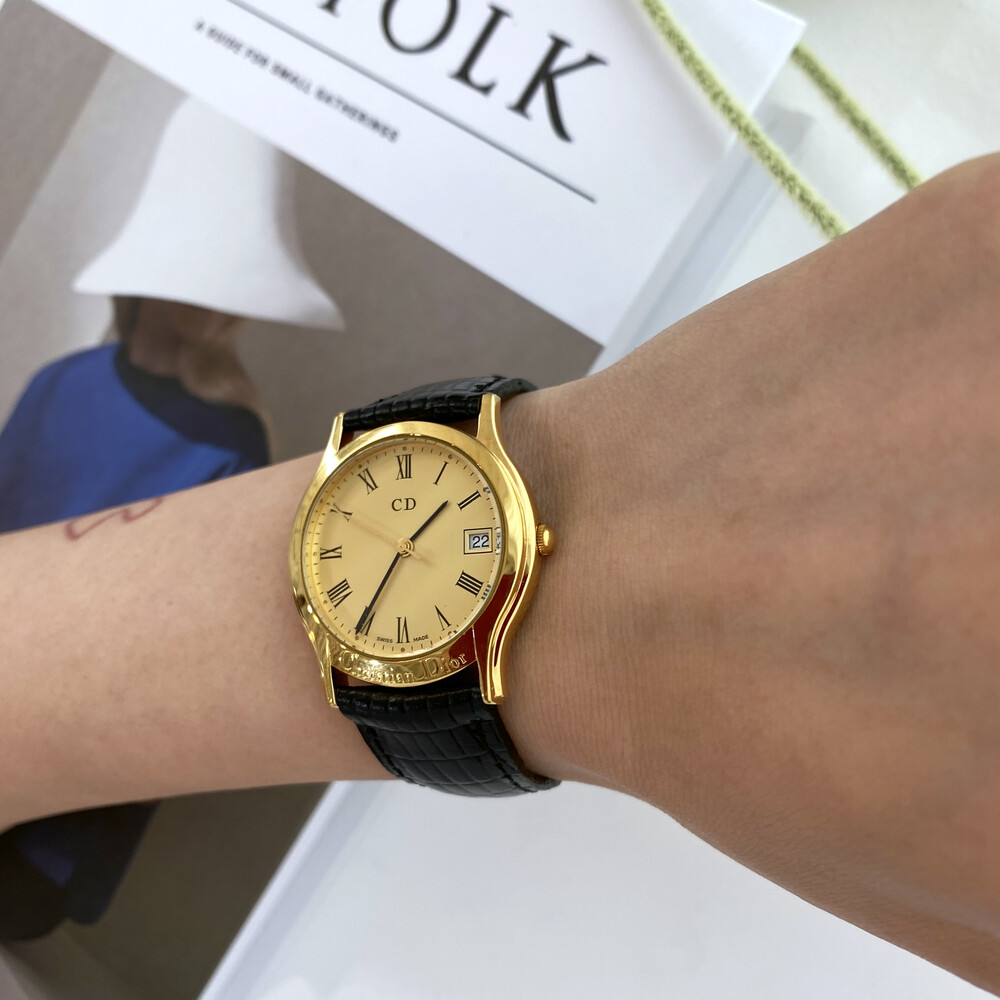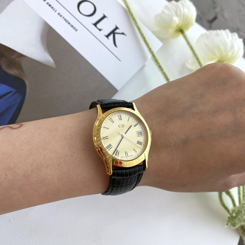 다이얼 위의 CD 심볼과 디올 D 버클이 매력적인 시계입니다.