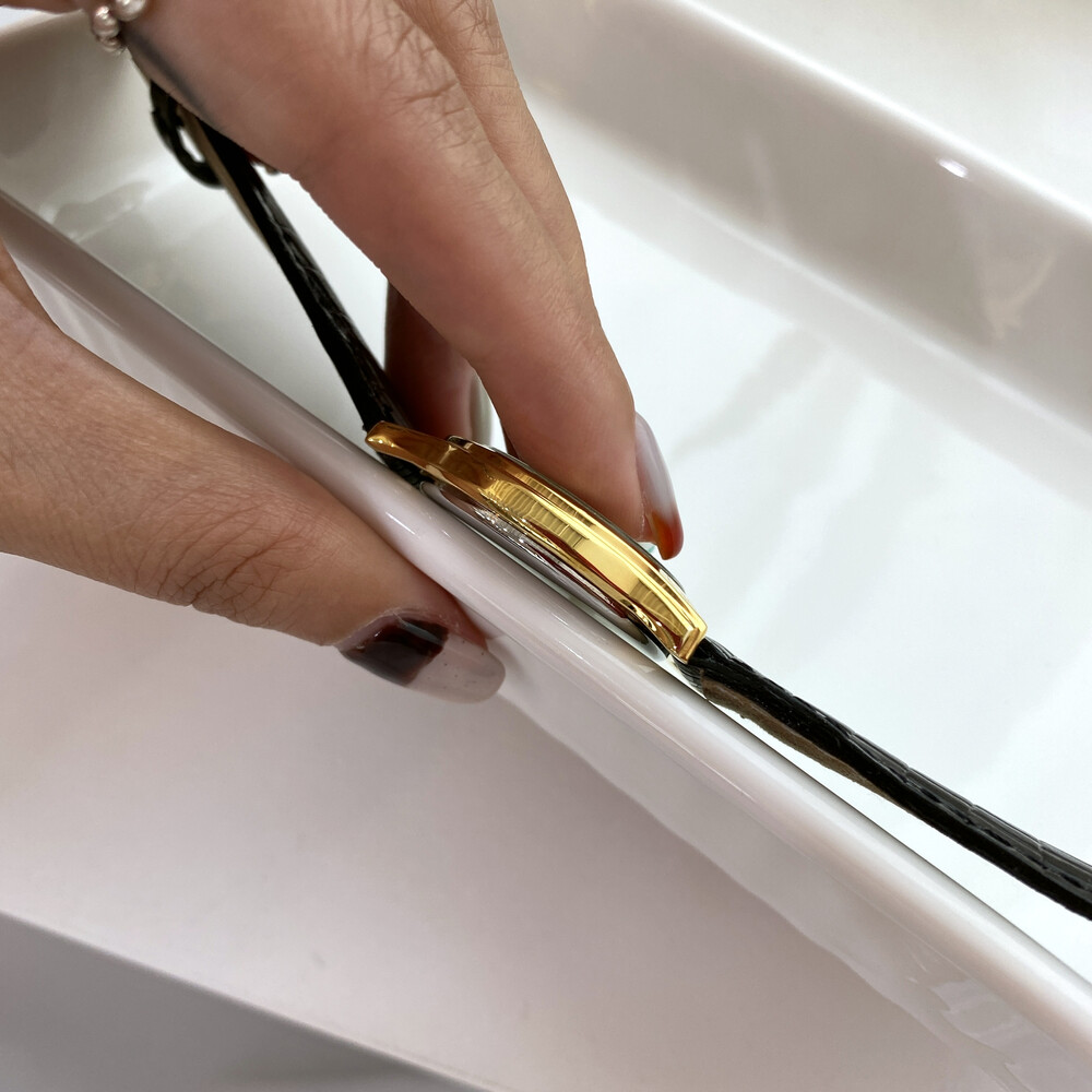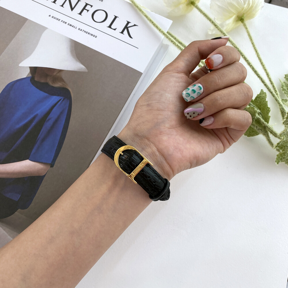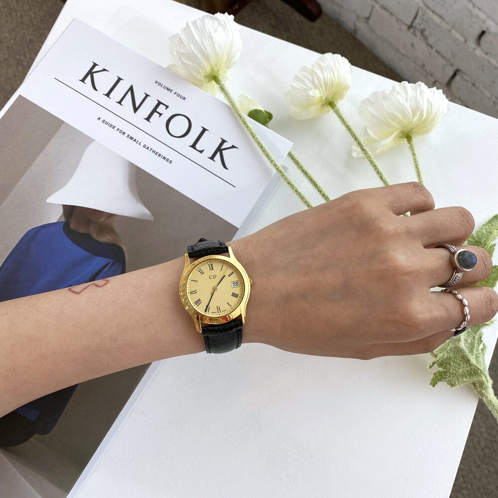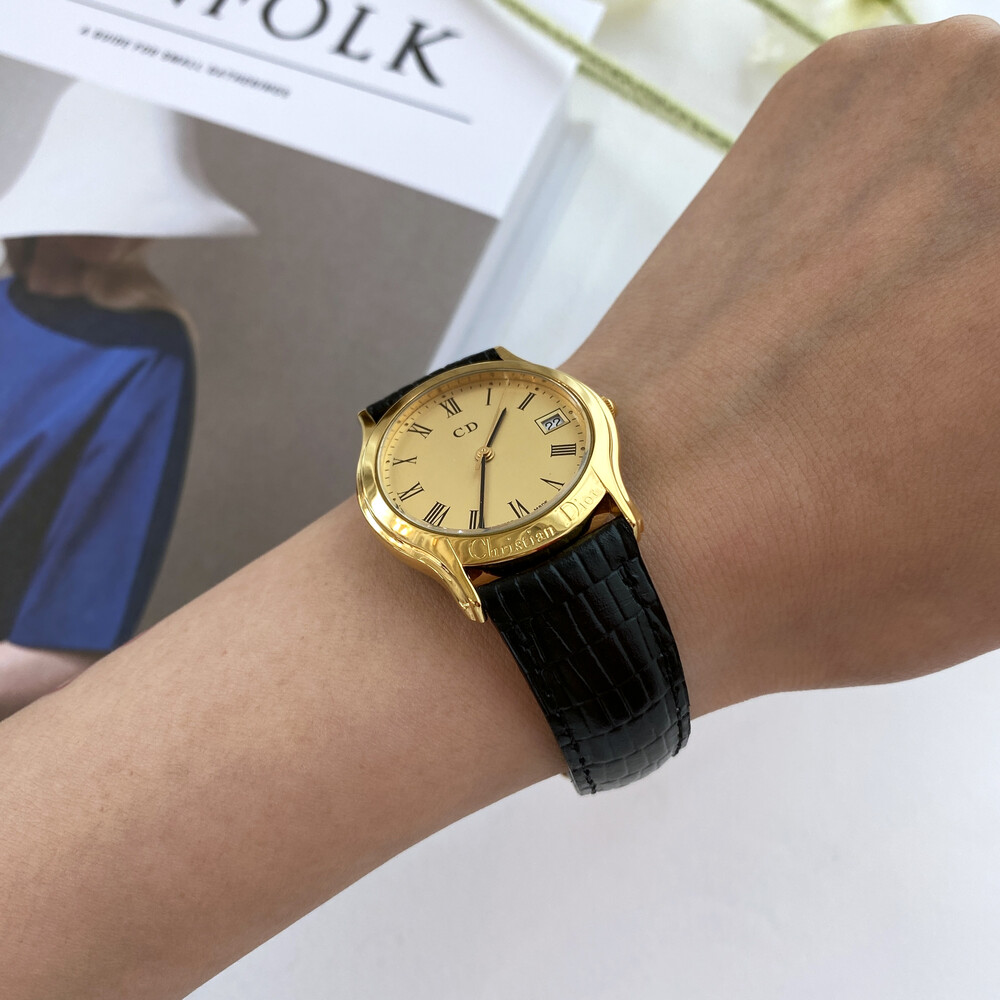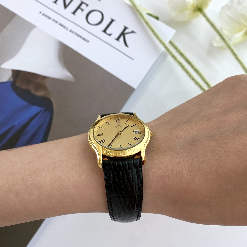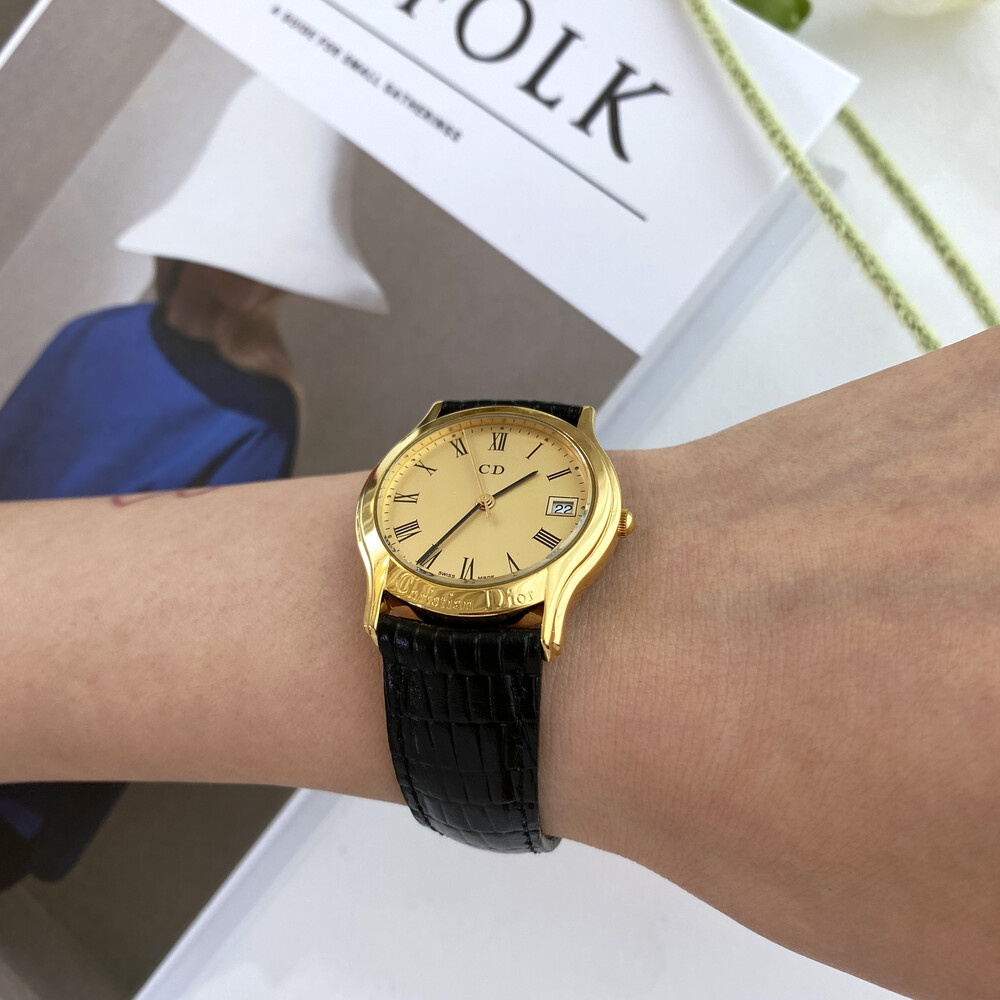 다이얼 위의 CD 심볼과 디올 D 버클이 매력적인 시계입니다.