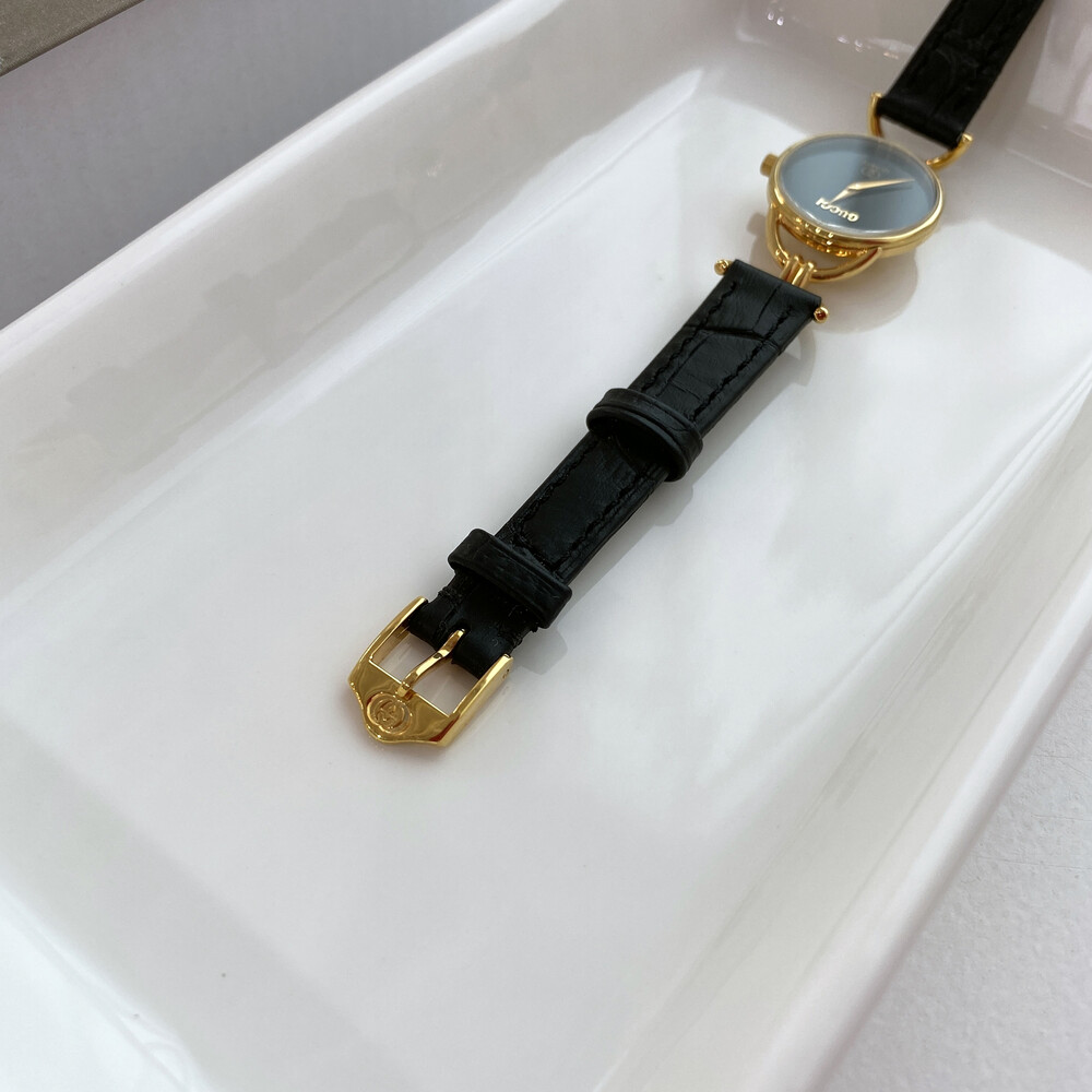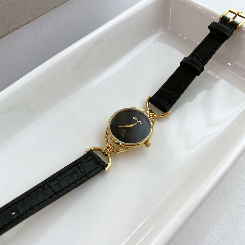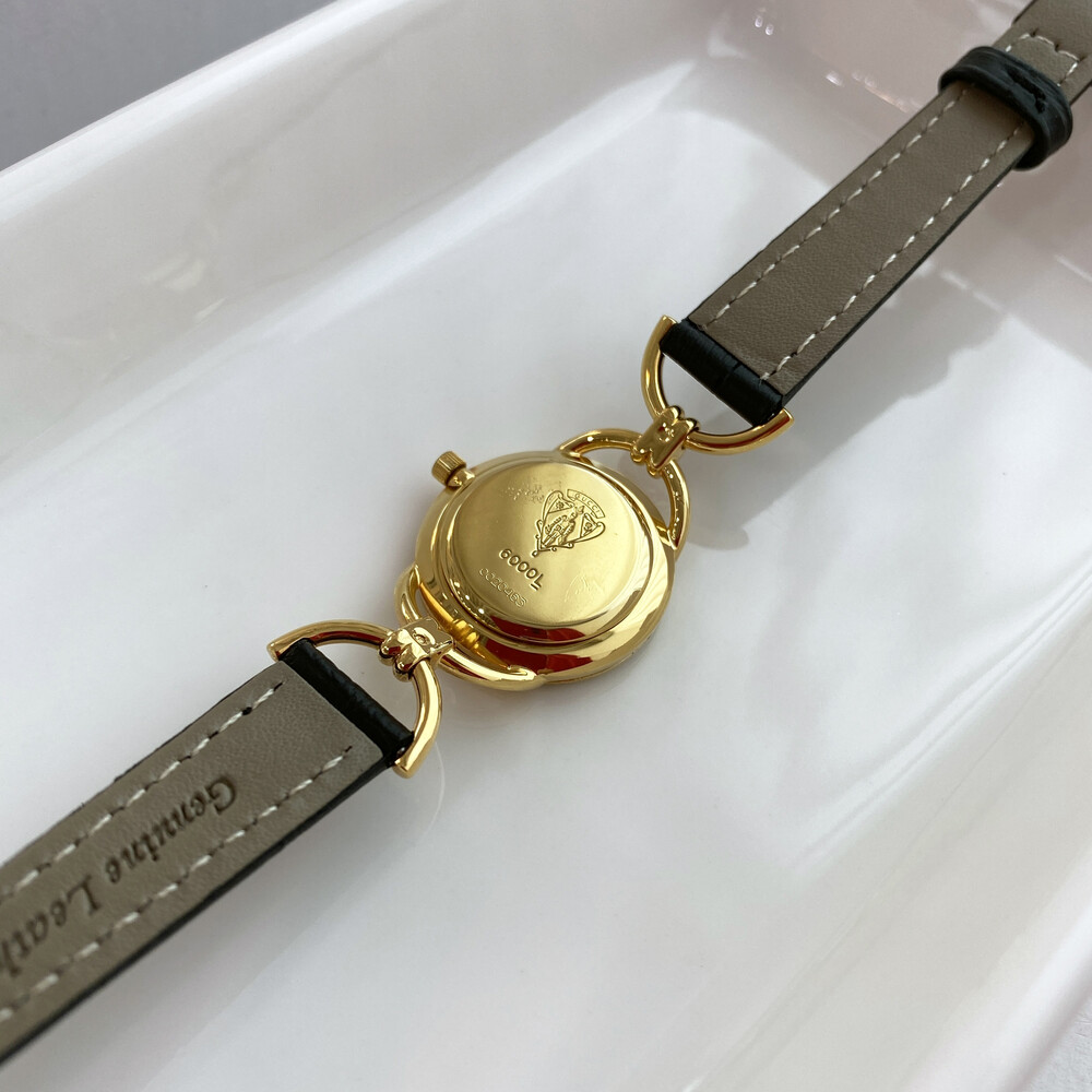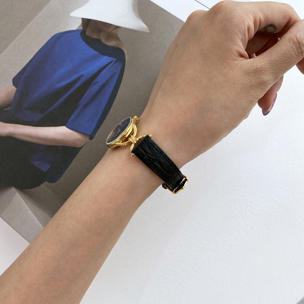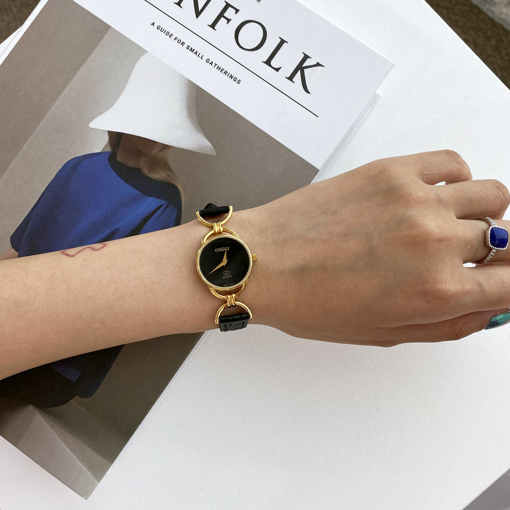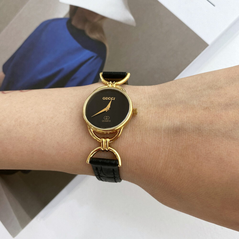 매력적인 홀스빗 타입의 러그와 깔끔한 블랙 문 다이얼 위의 구찌 심볼이