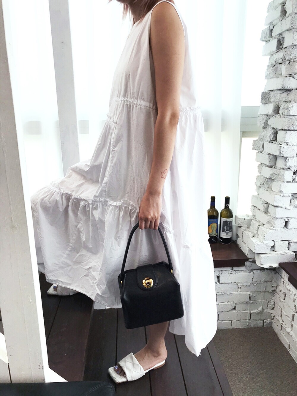 매력적인 스퀘어 바디와 중앙의 골드 톤 트위스트 클로저 위의 위의 지방시 로고가