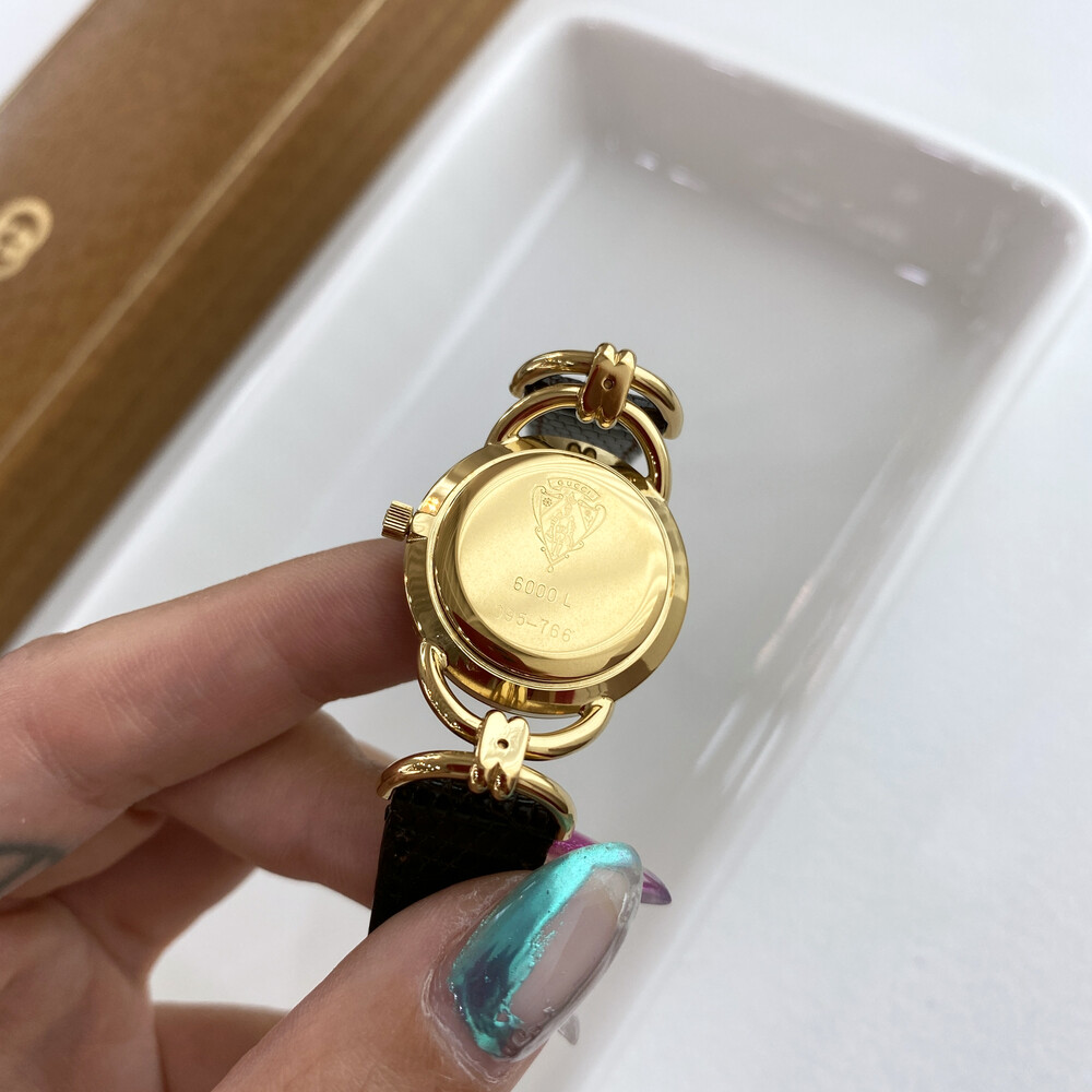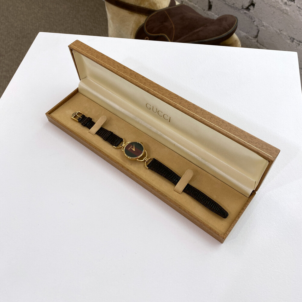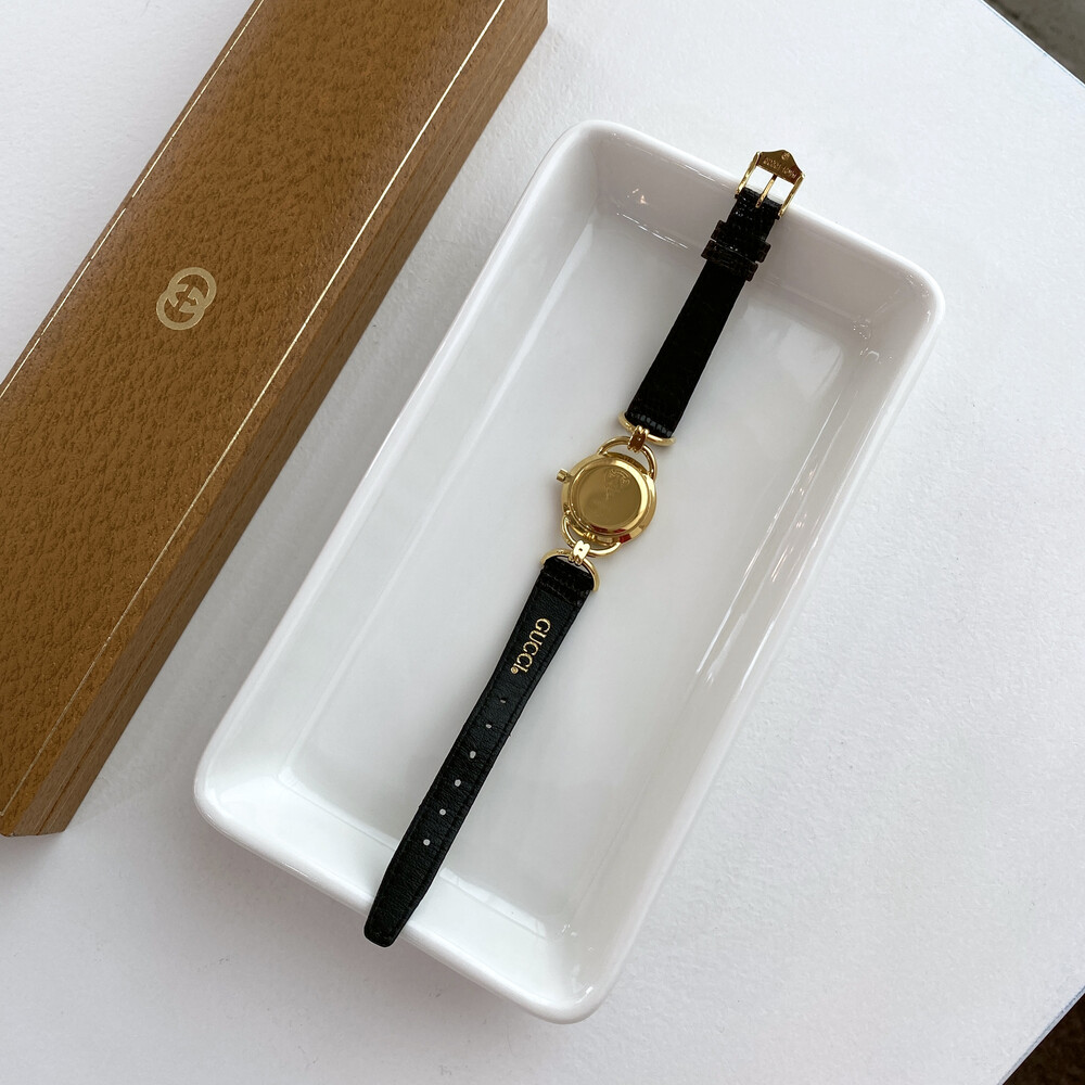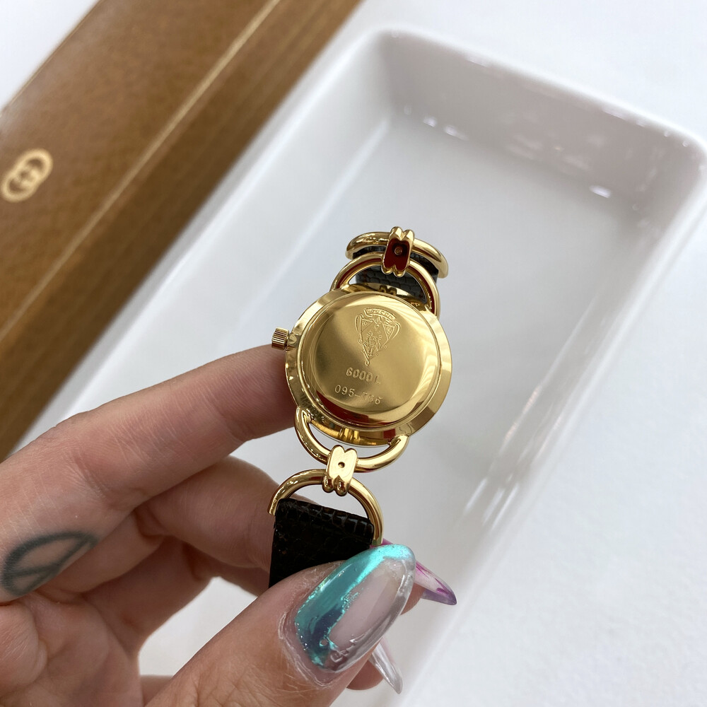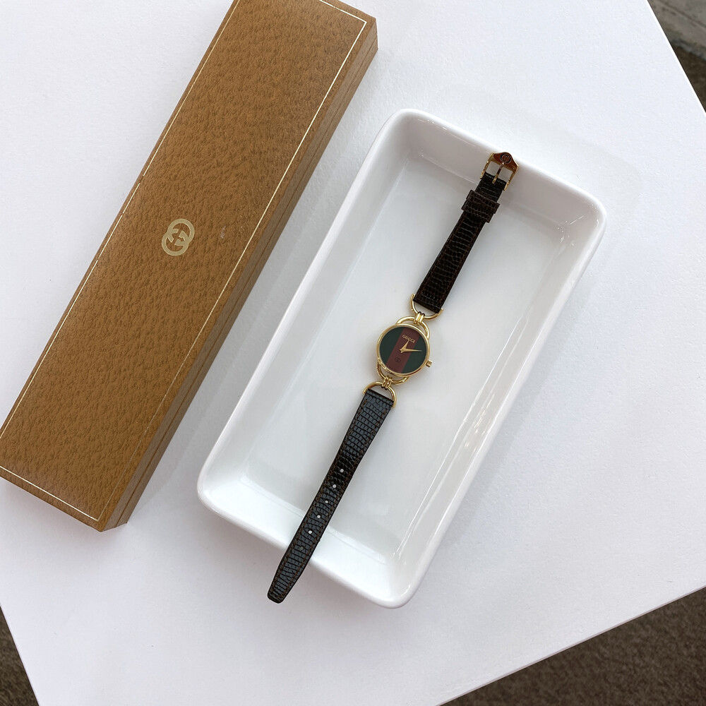 매력적인 홀스빗 타입의 러그와 구찌 시그니처 쉐리 라인 다이얼 위의 구찌 심볼이